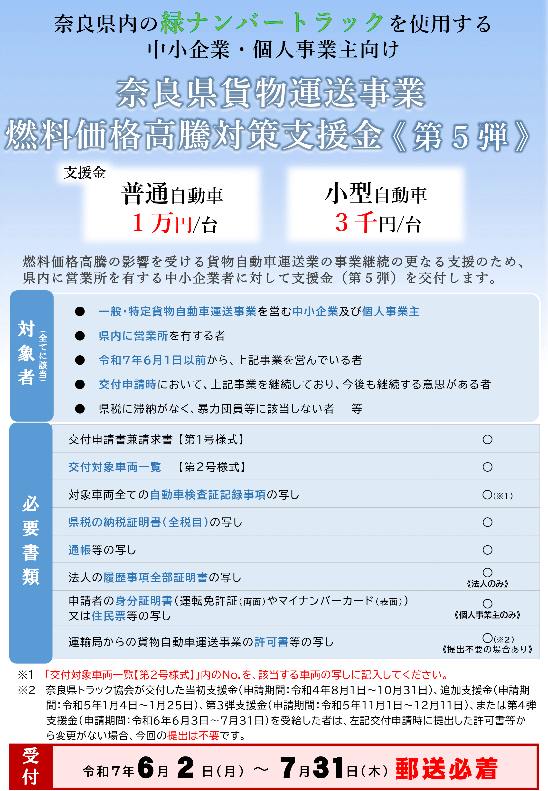 - 奈良県貨物運送事業燃料価格高騰対策支援金(第5弾)