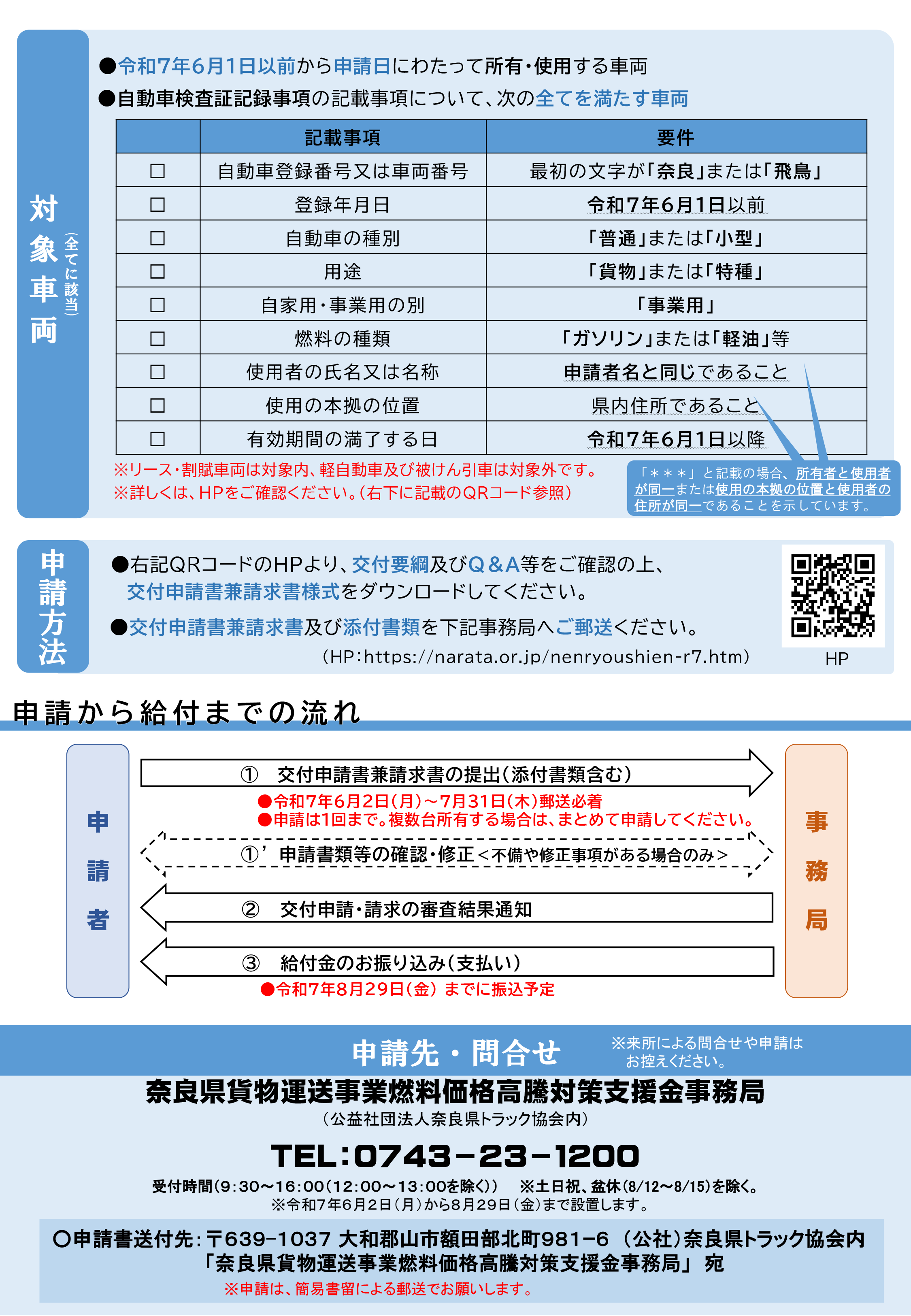 「奈良県貨物運送事業燃料価格高騰対策支援金事務局」 宛